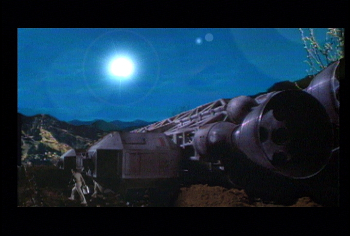 They didn't have the technology to do it in 1973, so let's do it now, the way it was meant to be (picture 22-23-24). Another situation came along, in the scene where Koenig is talking to Victor on Earth, the 1:85 aspect ratio was not doing well with close-up of Koenig. So I found a way to modify the picture by adding more background (which are usually soft) so we can give a 1:85 look that is not cropping the picture but give us the illusion of more picture.(picture 26-27-28). I will use that effect again with future episodes.